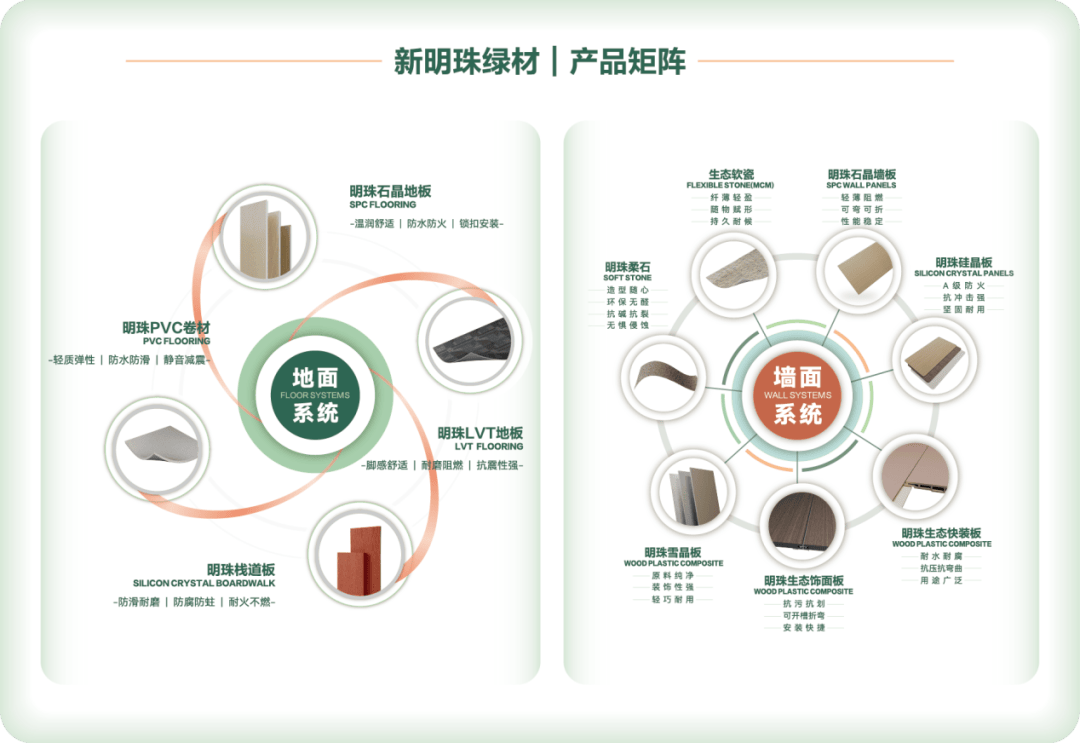 做为从陶瓷巨头孵化出的新板块,绿色新材比拟于陶瓷更具分析劣势。新明珠绿材能够共享母公司正在品牌影响力、渠道收集、工程办事等方面的深挚堆集,中国建建材料结合会发布我国首个《好材料选材公例》,这类 “绿色新材” 凡是具备一些性劣势:原猜中大量利用尾矿、废料,陶瓷行业的表示可圈可点。(4)优良目标关心材料机能提拔取质量逃溯。“好房子”并非笼统概念,配合鞭策陶瓷行业辞别以规模和成本驱动的粗放增加旧时代,国度明白提出“让人平易近群众住上更好的房子”的方针。将来数十年,将来的行业合作逻辑正正在发生深刻改变:企业的焦点合作力。东鹏的防滑砖、索瓷的集成岩板、冠珠(新明珠集团)的防滑砖、简一的大理石瓷砖成功入选。近年来,将“平安”这一首要目标落到实处。将越来越多地集中正在材料的“附加功能”上,而是打制了笼盖地面系统(石晶地板、LVT地板、PVC卷材、明珠栈道板)取墙面系统(生态软瓷、明珠柔石、石晶墙板、硅晶板、明珠雪晶板、生态饰面板、生态快拆板)的系统化产物矩阵。国度关于“好房子”的扶植要求已从政策步入本色性的选材使用阶段。当客户需要的是一款投入少且可以或许快速的建建材料时,这一系列动态标记着,